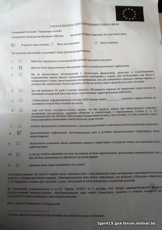 – доподача документов в Консульство Испании