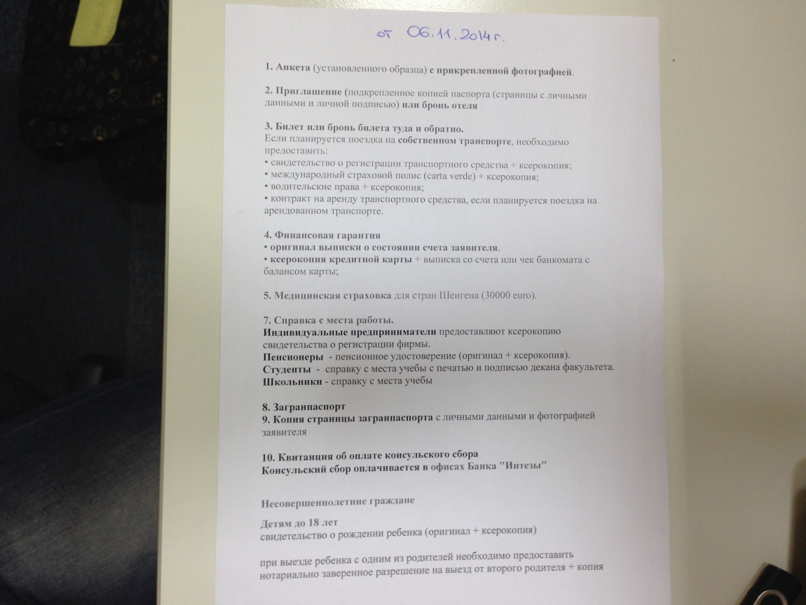 3. Загранпаспорт, действительный минимум в течение трех месяцев после последней предполагаемой даты выезда из Шенгенской зоны, содержащий как минимум две чистые страницы и не старше десяти лет и копия всех его страниц (даже пустых).