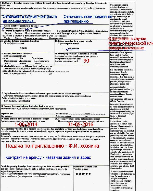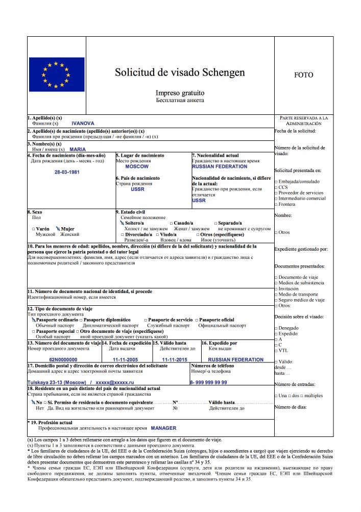 Заполненная национальная визовая форма