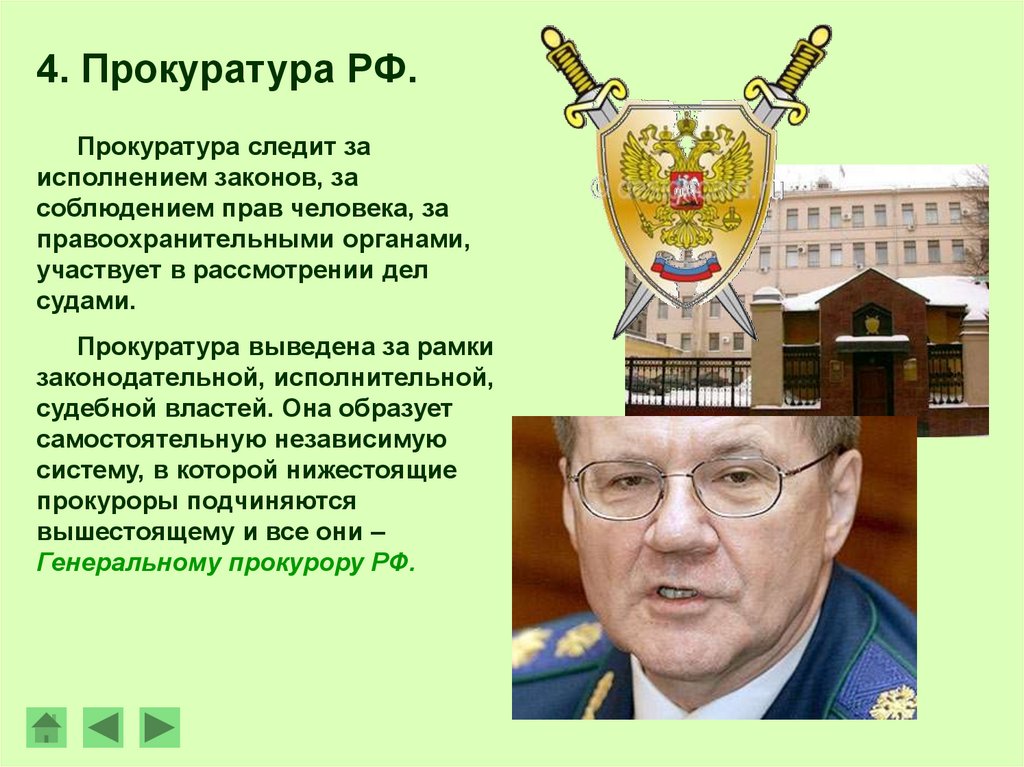 Нынешняя система, при которой все прокуроры назначаются генеральным прокурором на пятилетний срок, не может рассматриваться как соответствующая международным стандартам независимости органов прокуратуры. Для укрепления независимости прокуратуры и решения всех вопросов, связанных с прохождением службы работниками прокуратуры, было бы целесообразно создать институт прокурорского самоуправления, например прокурорский совет, говорится в докладе.