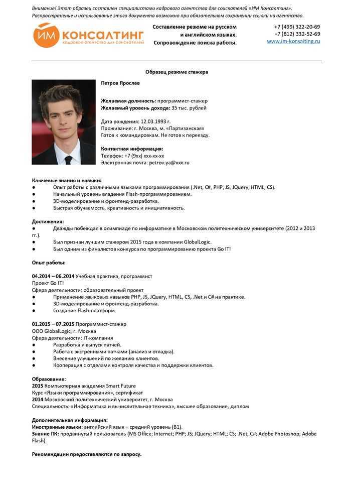 Получил резюме – сразу видна рука профессионала.
