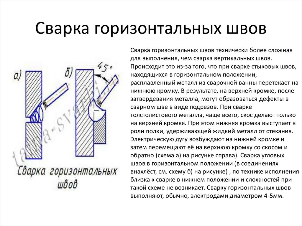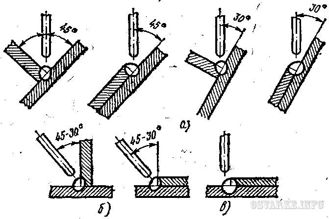 Ведение углом вперед как правило применяют при сварке с массивной проволокой, а углом назад – шлакообразующей порошковой проволокой. Под малым углом назад горелка как правило ведется также в положении PG. Сварка вертикальных швов (поз. PG) применяется в основном на тонких листах.