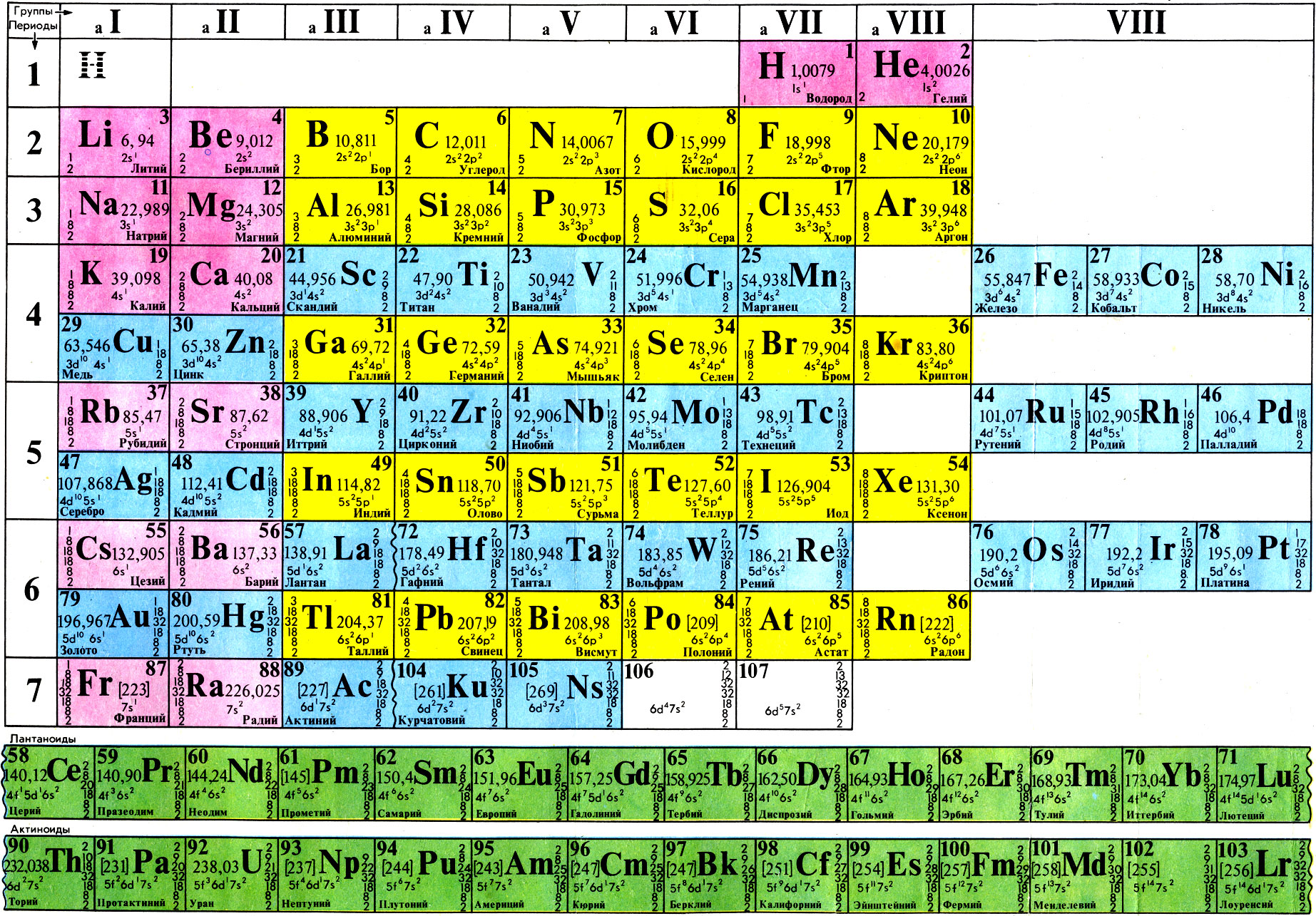 Периодическая таблица предназначена для классификации элементов в соответствии с их сходством химических и физических свойств. В этой таблице элементы упорядочены по возрастанию атомного номера. В периодической таблице вы можете увидеть атомный номер, имя, символ и массовое число элементов. Как видно из приведенной выше картинки, горизонтальные ряды называются период и вертикальные столбцы называются группа .