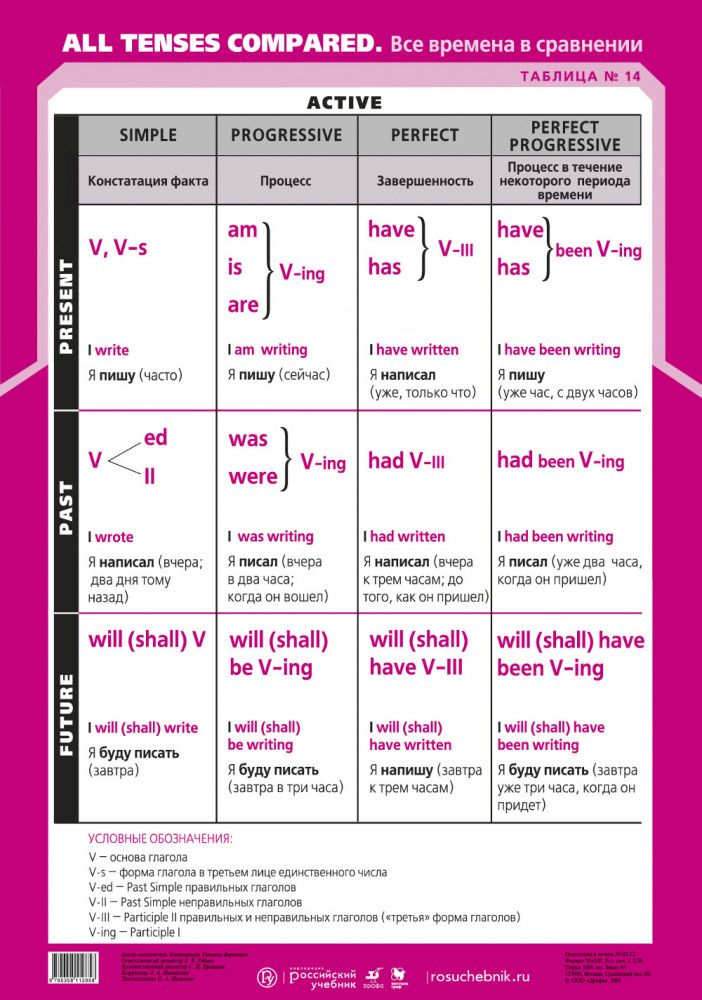 Если вы уже изучаете некоторое время английский язык, то для вас может оказаться полезной следующая схема с примерами (картинка кликабельна).