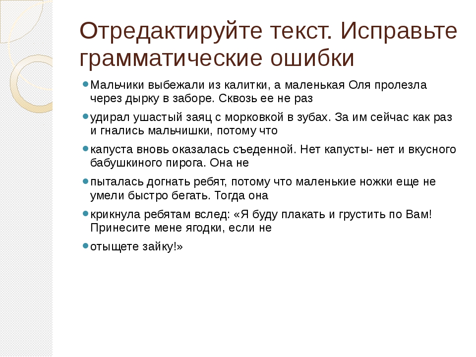 - Одним из них является тип исправления ошибок для словесных ошибок.