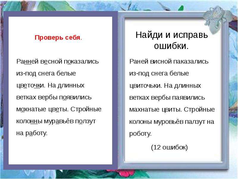 Тексты с орфографическими ошибками. Русский язык, 4 класс.