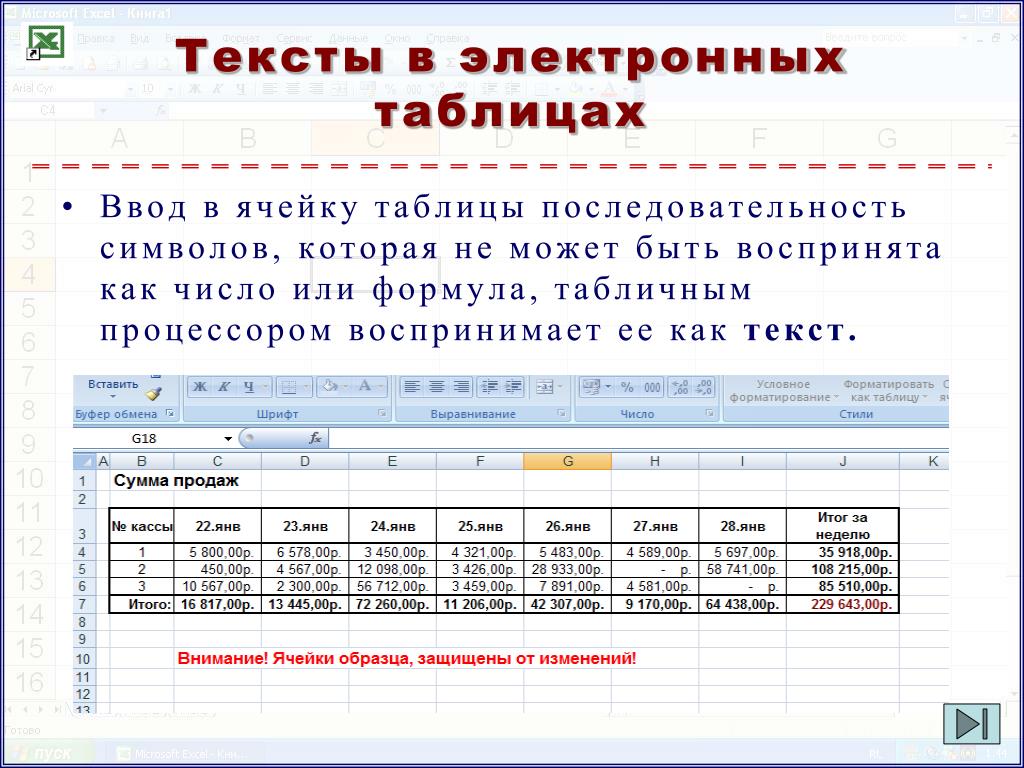 - ENTER или двойной щелчок — начать редактирование ячейки