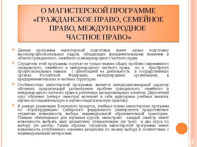 В комплексе первая и вторая главы магистерской диссертации по гражданскому праву должны представлять логическую и аргументированную авторскую концепцию по объекту исследования.