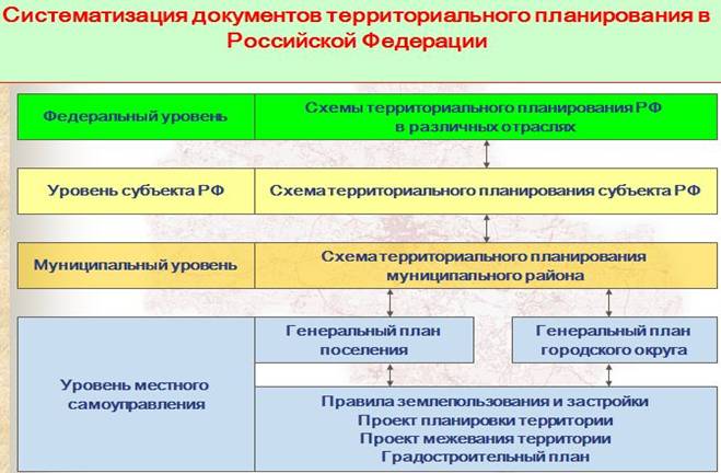 – увязка мероприятий по территориальному планированию и землепользованию. Определение зон размещения объектов капитального строительства должно учитывать категории земель, на которых предлагается их размещение, а изменение границ земель различных категорий связано с размещением объектов капстроительства;