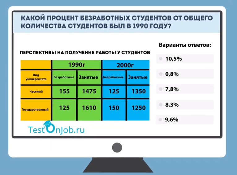 Получая тысячи откликов на вакансии, для работодателя обычная практика использовать тесты для оценки кандидатов. После отбора резюме, чаще всего при приеме назначают числовой тест онлайн. Если тест успешно пройден, то кандидата приглашают на собеседование. Зачастую работодатель попросит пройти тест повторно в офисе, чтобы удостоверится в том, что высокий результат, набранный в онлайн тесте, принадлежит именно вам. Поэтому просить друзей пройти тест за вас не лучшая идея. Лучший способ подготовится решить числовые тесты с ответами, представленные ниже.