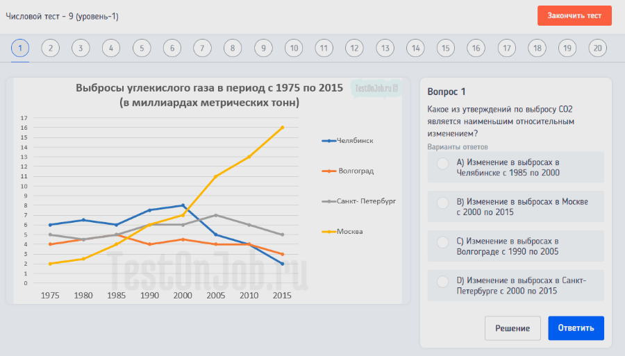 Числовой тест онлайн, вопросы