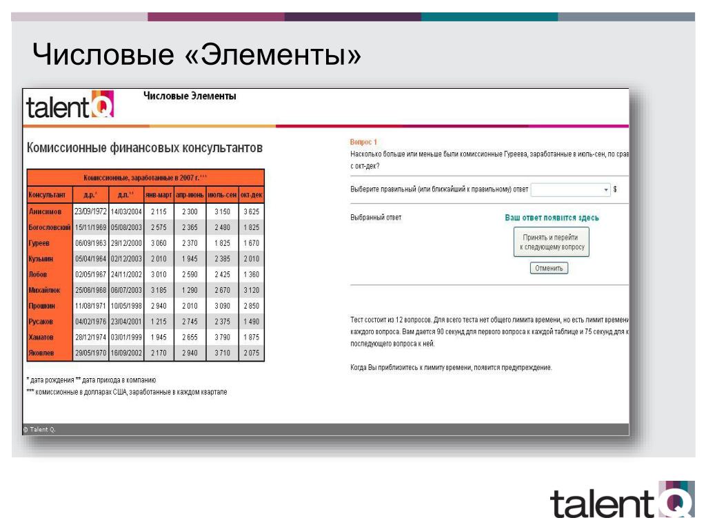 - 5. Примеры числового теста Talent Q