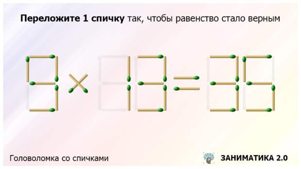 Перед Вами сложена из 13 спичек фигура коровы, которая идет в сторону. Ваша задача, переложить 2 спички, чтобы корова шла в другую сторону.
