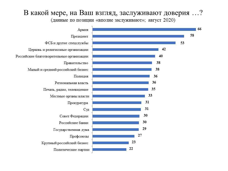 Среди респондентов с высшим образованием рейтинг профессий почти аналогичен общероссийскому раскладу: лидируют врачи, на 2-м месте — юристы/экономисты, на 3-м — предприниматели и программисты, далее — военные, директора банков и инженеры.