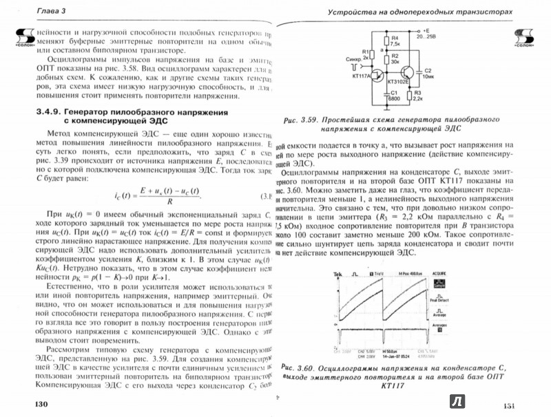 3, конденсатор заряжается через резистор R4 и сопротивление участка эмиттер — коллектор биполярного транзистора Т1. В остальном работа этого генератора не отличается от описанного ранее. Зарядный ток, а, следовательно, и частоту пилообразного напряжения, снимаемого в этом случае с эмиттера однопереходного транзистора Т2, регулируют изменением напряжения смещения на базе транзистора Т1 с помощью подстроечного резистора R2. Отклонение линейности формы колебаний, вырабатываемых таким устройством, не превышает 1%