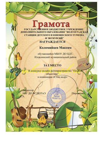 Благодарность от Управления образованием муниципального образования Крымский район детский эколого-биологический центр