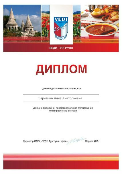 Благодарность туристической компании “Калина Трэвел Сервис”