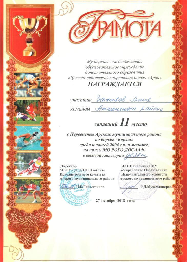 Благодарственное письмо Министерства спорта, туризма и моложежной политики Российской Федерации (март 2012 года)