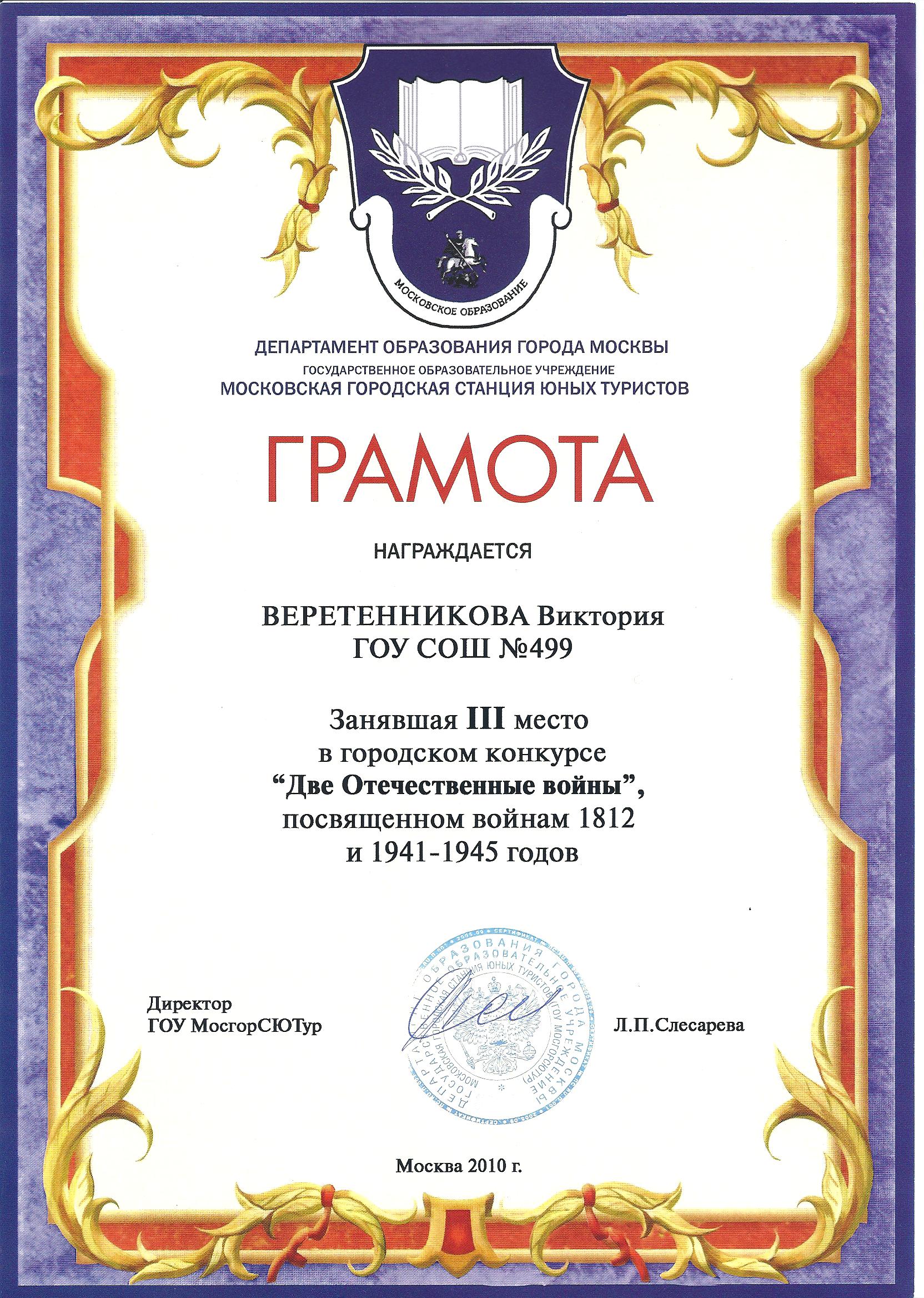 Дипломная работа выпускницы кафедры международного туризма и менеджмента Додиной Валерии на тему “Город-курорт Геленджик на рынке пляжного отдыха”, выполненная под руководством доцента кафедры Волковой Т.А. награждена дипломом межрегиональной общественной организации “Национальная академия туризма”.