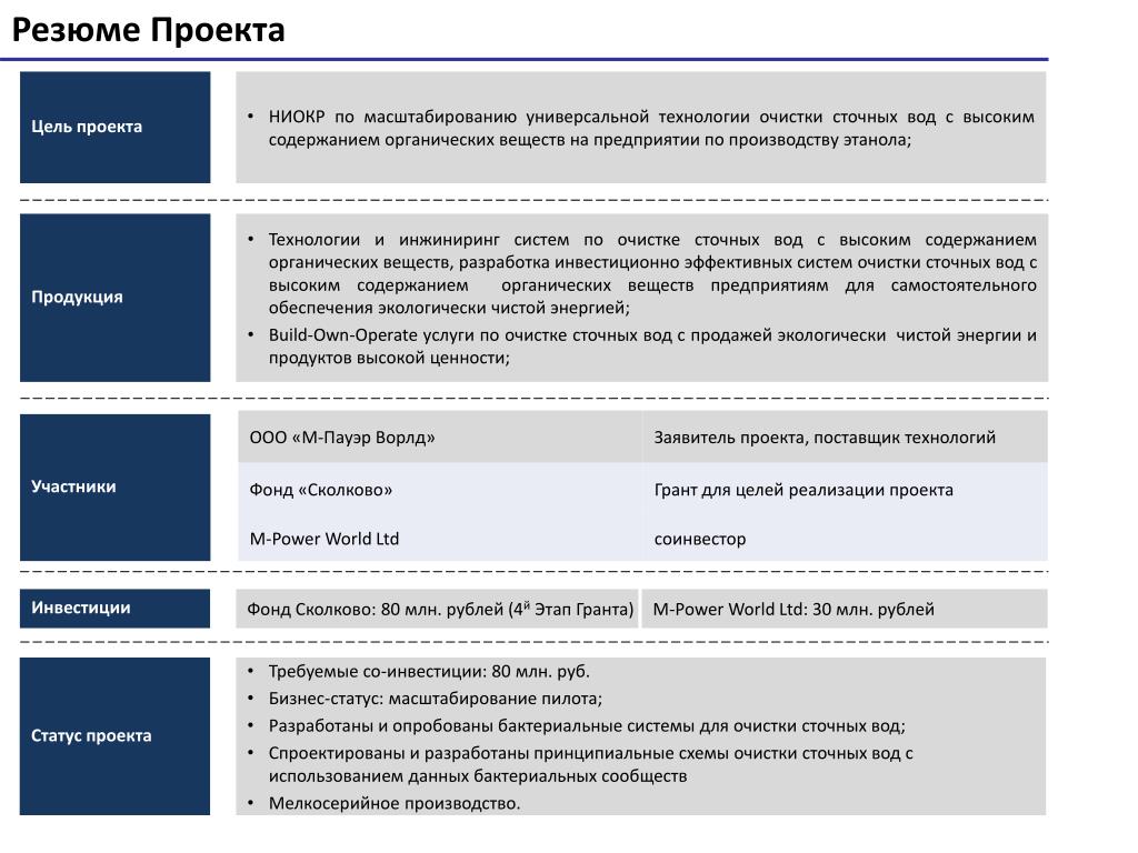 - Включите 1-2 маркированных пункта, кратко описывающих суть проекта.