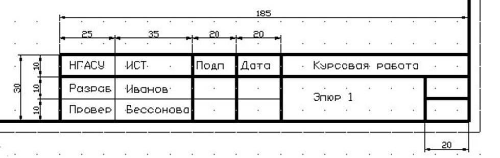 Теперь остается только заполнить основную надпись, и наш штамп будет готов.