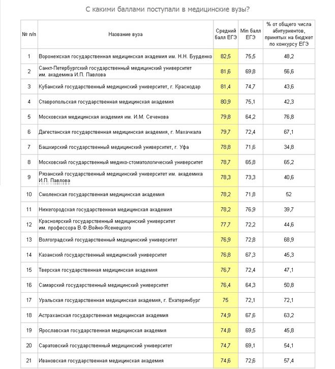 Получив баллы выше среднего по физике, биологии, химии (от 70 до 75), можно рассчитывать на бюджетное зачисление в медицинские и инженерные учебные заведения. Растет интерес к ядерной физике, муниципальному и государственному управлению, информационной безопасности, издательскому делу, дизайну.