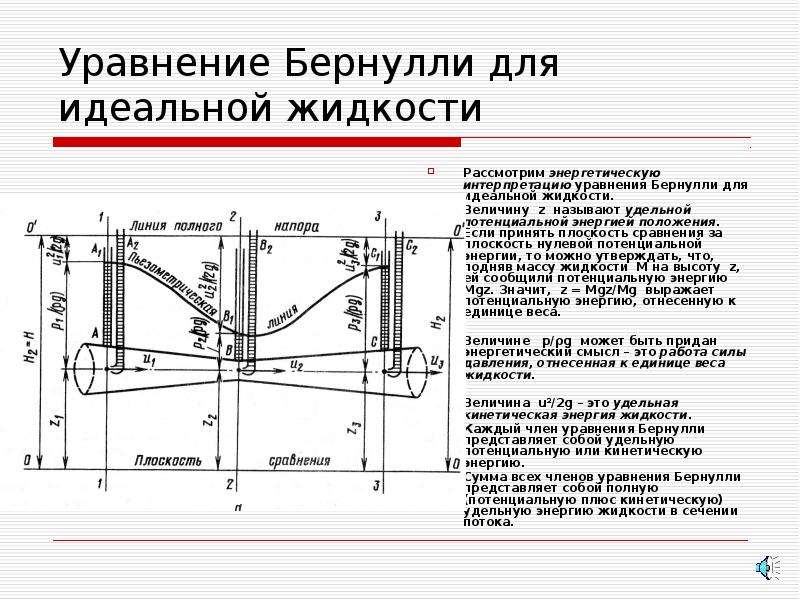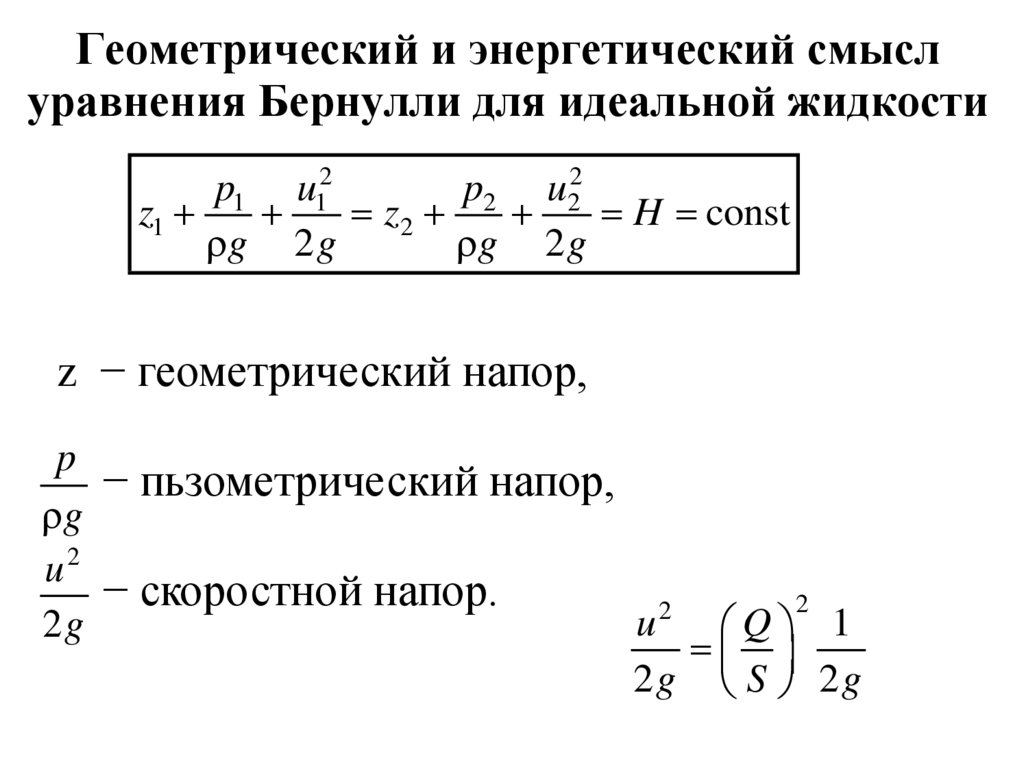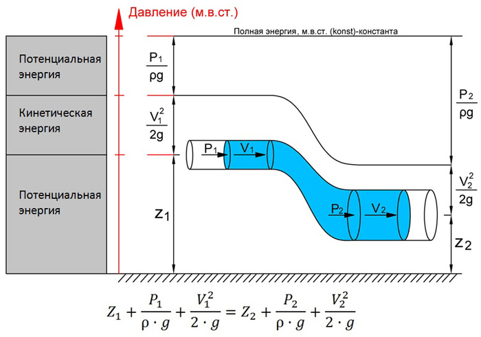 В данном случае уравнение Бернулли можно прочитать так: сумма