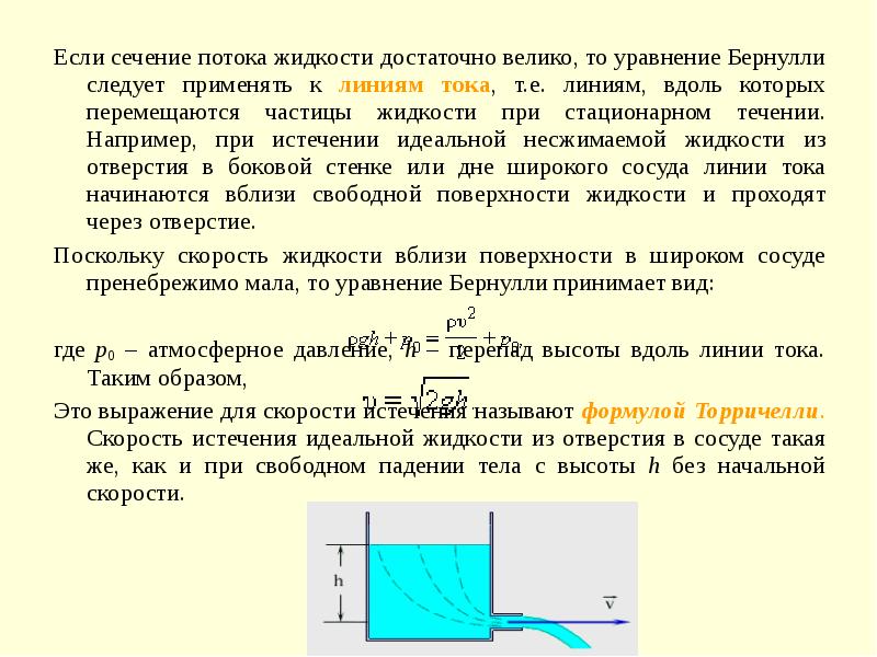 Предположение, что жидкость невязкая, означает, что у нее нет вязкости. Поэтому определенные эффекты вязкости, такие как прилипание воды к стенкам трубы или емкости, не применяются.