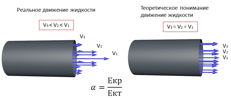 Коэффициенты и , которые зависят от режима течения жидкости, для ламинарного режима , а для турбулентного режима , называются коэффициентами Кориолиса. Потерянная высота складывается из линейных потерь, вызванных силой трения между слоями жидкости, и потерь, вызванных местными сопротивлениями (изменениями конфигурации потока)