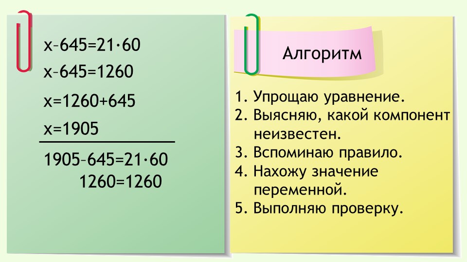 | Корень уравнения – это число, которое при подстановке вместо буквы обращает уравнение в верное числовое равенство. |