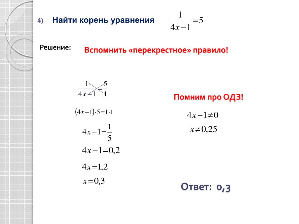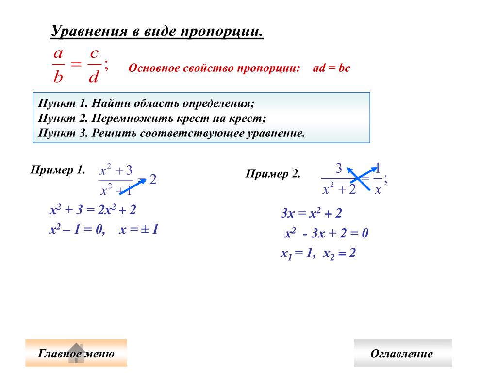 Существует правило для решения уравнений пропорцией. Вспомним основное свойство пропорции: