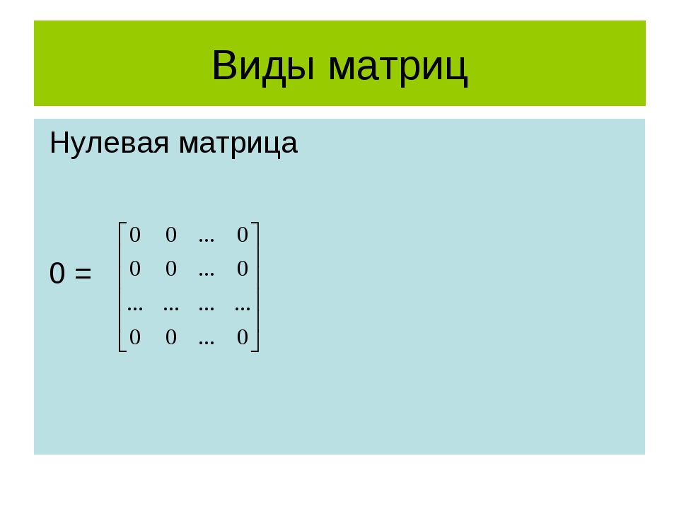 Матрицы бывают: 0 = – нулевая матрица,