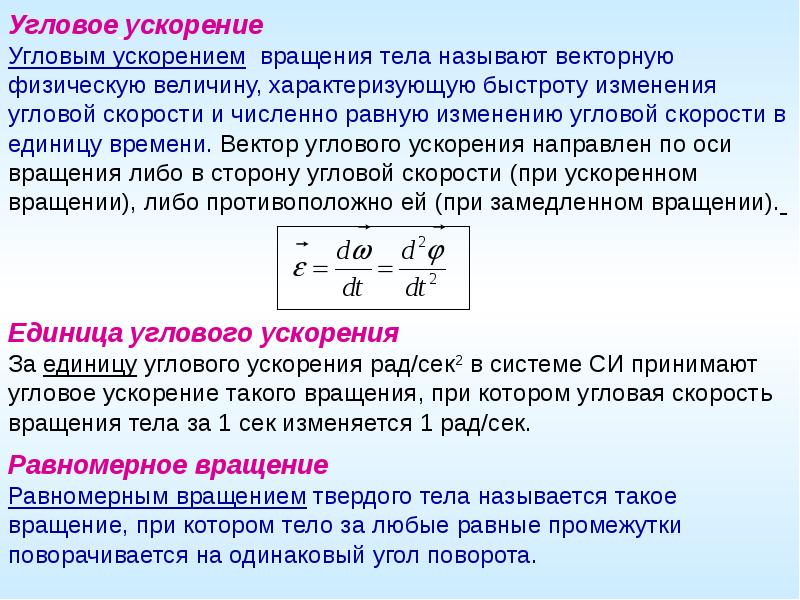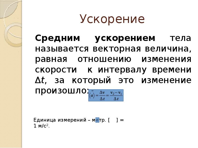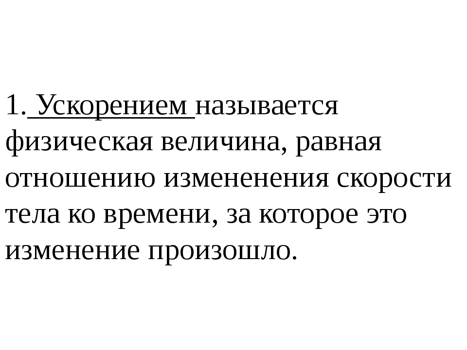 1) Физическая величина, равная отношению изменения скорости к тому промежутку времени, за который это изменение произошло
