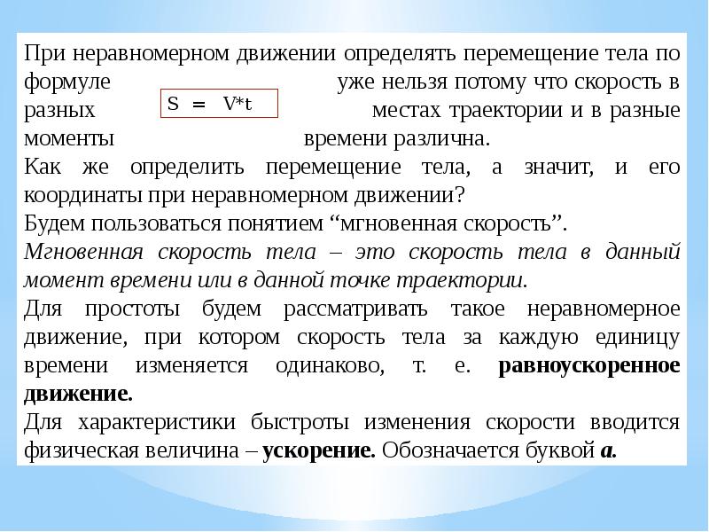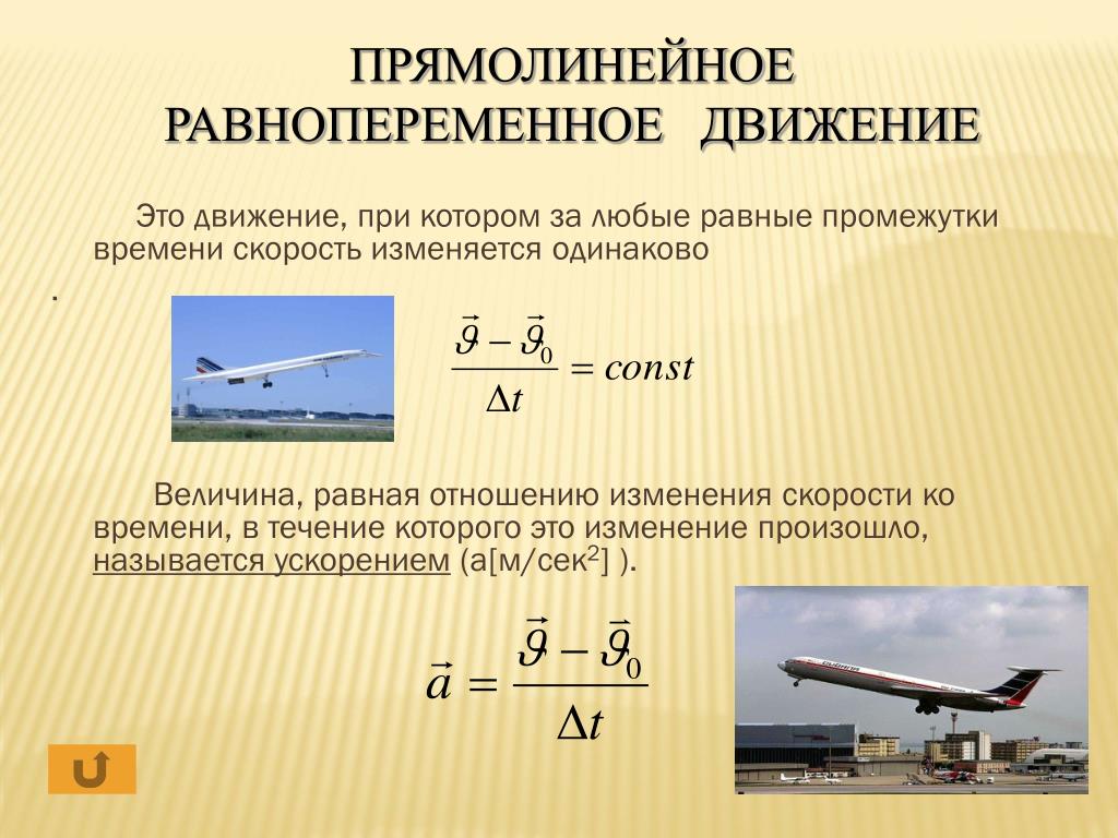 Если скорость изменяется одинаково в течение всего времени движения, то такое движение называют равнопеременным.