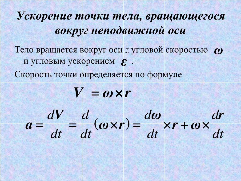 Понятие ускорения – это одно из важнейших понятий в кинематике, оно относится к точке. Когда мы говорим об ускорении тела, мы имеем в виду ускорение какой-либо его точки.