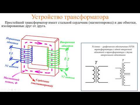 Конструктивно трансформатор состоит из одной или нескольких изолированных обмоток, которые намотаны на ферромагнитный сердечник. В простейшей схеме это первичная и вторичная обмотки. На первичную подаётся напряжение, со вторичной снимается. Под воздействием переменного тока, который подаётся на первичную обмотку, в магнитопроводе образуется синусоидальный магнитный поток Ф. Пронизывая обмотки, он индуцирует в первичной обмотке электродвижущую силу самоиндукции (ЭДС), а во вторичной — ЭДС индукции.