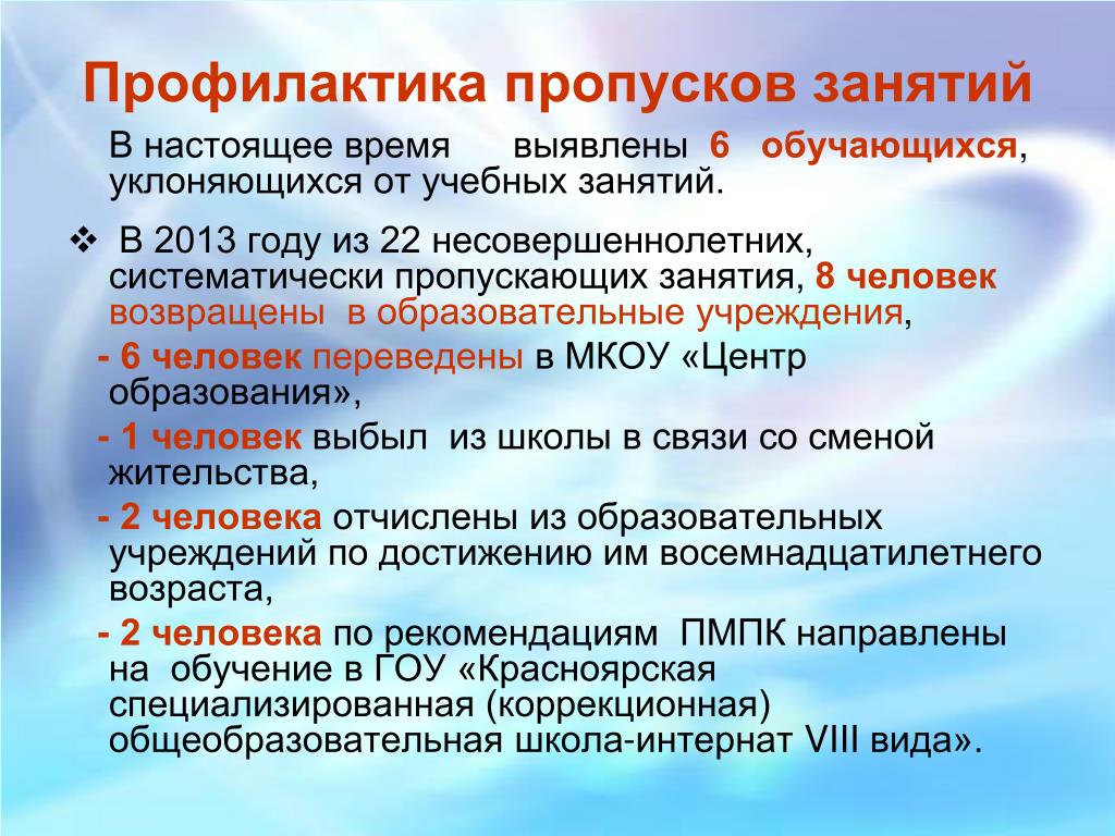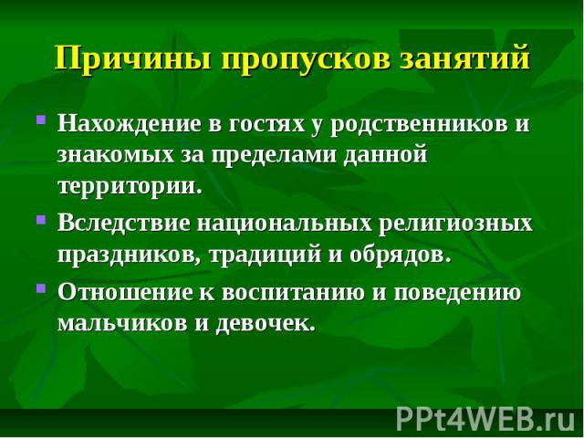 Некоторые неуважительные причины пропуска школы включают следующее: