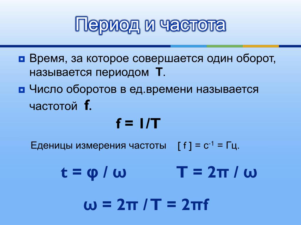 Периодическое движение характеризуется двумя физическими величинами – периодом и частотой вращения.