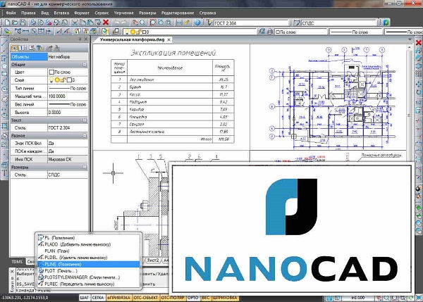 NanoCAD – это простая программа для черчения. Она во многом уступает предыдущим двум решениям, но отлично подойдет для новичков и обучения черчению на компьютере.