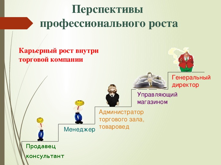 Слова «он сделал карьеру» могут свидетельствовать не только о продвижении вверх по карьерной лестнице, когда с простого мастера сотрудник «дорастает» до директора предприятия, но и о прогрессе в профессиональном плане – «горизонтальном росте». Например, в продажах звание «ведущего специалиста» часто соответствует статусу руководителя среднего, а то и высшего звена и подкрепляется высоким уровнем доходов, признанием в коллективе и наличием большего, чем у других сотрудников, количества привилегий: от свободного планирования рабочего времени до эксклюзивной процентной ставки по договорам и дополнительного отпуска.