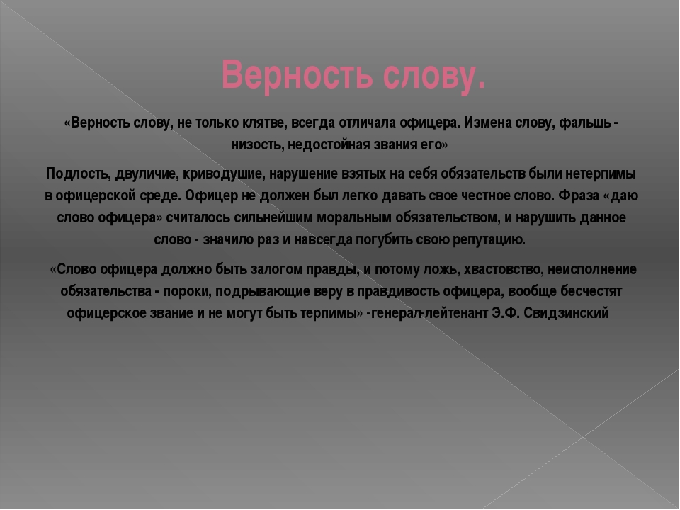 Для начала сформулируем парадоксальную мысль: лучшие слова верности – это не слова, а дела. Действительно, верность, как она понимается большинством, нельзя подарить, пообещать или еще как-то преподнести. Верность измеряется временем, проведенным с человеком или на работе, если речь идет о преданности фирме. Поэтому мы собрали меткие и правдивые выражения, которые помогут всем желающим понять истинное определение слова «верность»:
