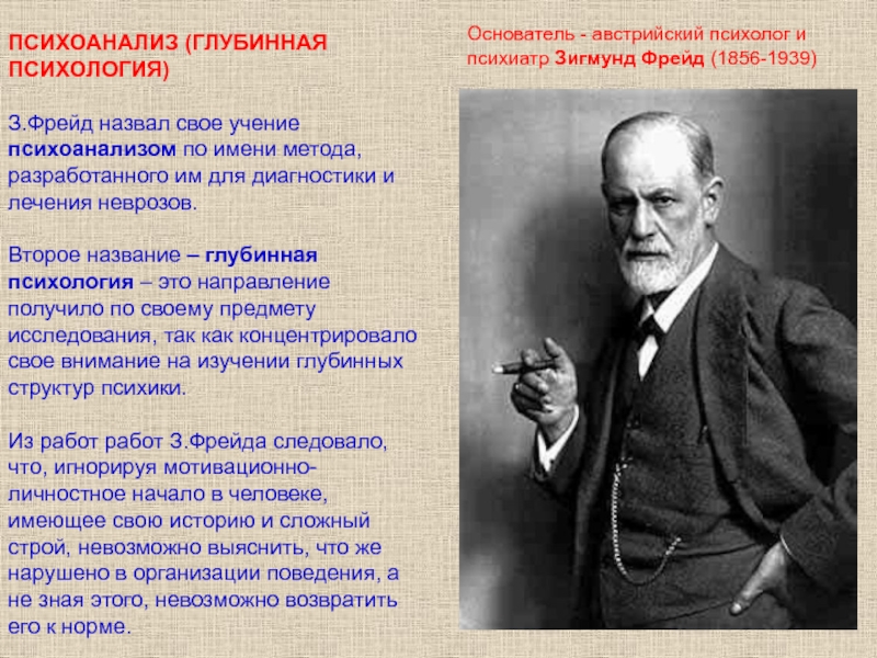 Основные достижения. Психоанализ. – Зигмунд Фрейд. Вклад в науку.