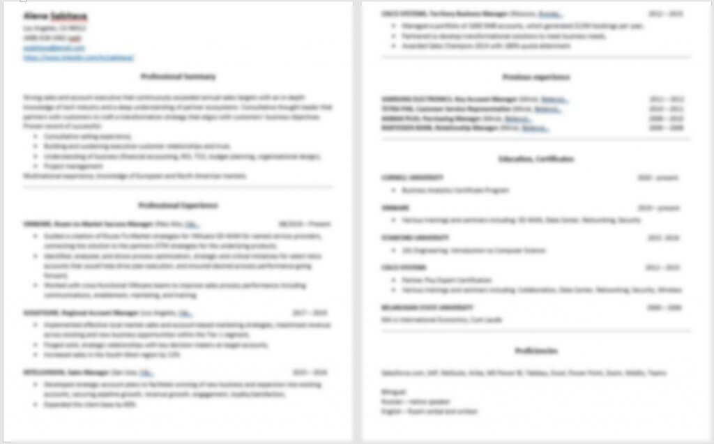 Ознакомьтесь с профессиональными шаблонами макетов resume.io, чтобы узнать о некоторых настраиваемых идеях. Вы также можете ознакомиться с нашими примерами современного или простого резюме.
