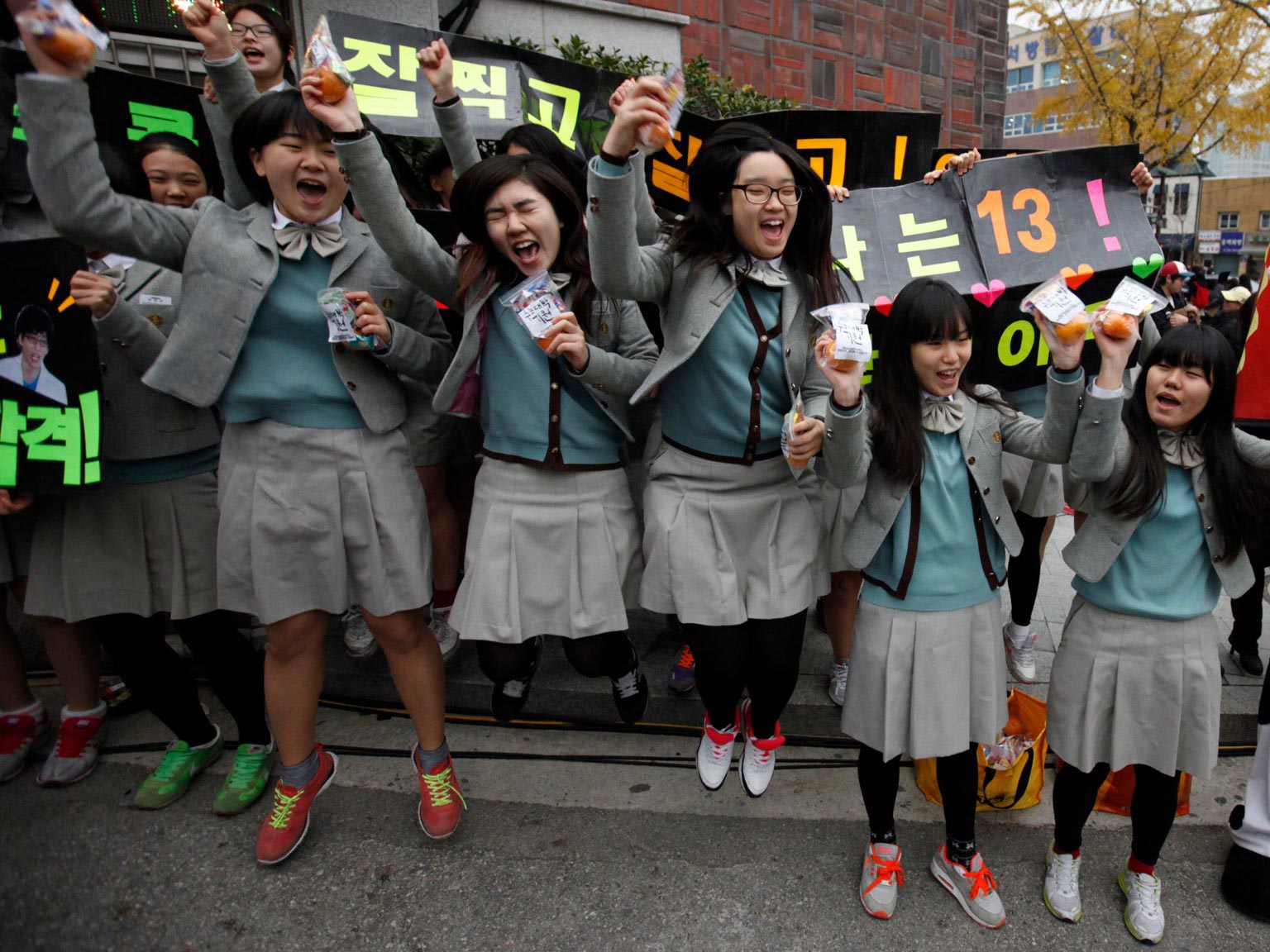 Подавляющее большинство корейских старшеклассников сдают тест на успеваемость в колледже с целью дальнейшего обучения. Стандарты высокие, и некоторые ученики начинают готовиться еще в детском саду. 5 разделов теста исследуют знание английского, корейского и математики, а также факультативных предметов, таких как социальные науки, физические науки и гуманитарные науки. В университете студенты сталкиваются с незнакомыми стандартами качества, и целые семьи помогают им сдать экзамен.
