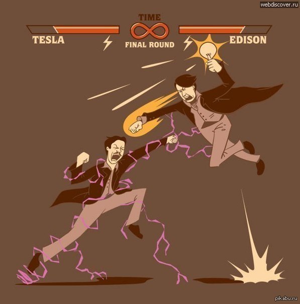 Впрочем, время от времени разногласия разрешить не удается. Тесла и Эдисон воевали за будущее электропередач. В этой битве было все: шокирующие демонстрации, переход на личности, достойный школьников, и даже попытки объявить переменный ток вне закона. В итоге победил переменный ток. Рациональная проектировка и дешевизна массового распределения – вот и весь секрет.