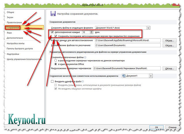 Если вы хотите изменить частоту, с которой Microsoft Word автоматически сохраняет восстанавливаемую копию документа, выполните следующие действия.По умолчанию установлено время 10 минут.