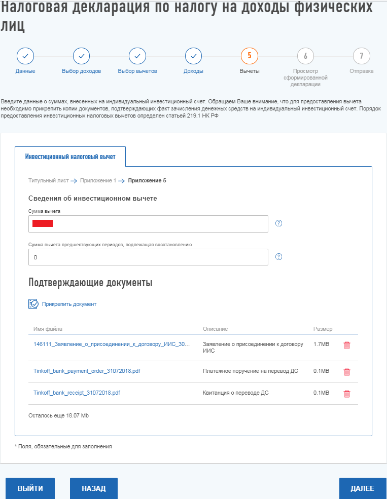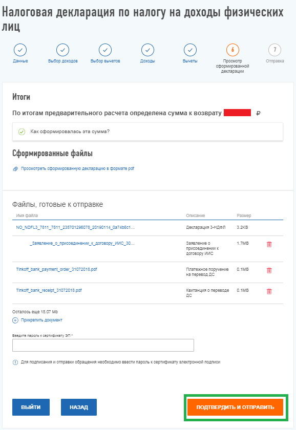 Когда вы убедитесь, что все данные внесены правильно, сформируйте файл для отправки. После вам будет предложено загрузить на сайт документы, подтверждающие ваше право на вычет. Они добавляются на портал в электронном виде.