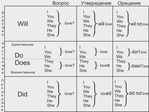 Чтобы лучше запомнить сложный материал, необходимо изучать его играючи, для этого, помимо научной таблицы времен, мы продемонстрируем вам шуточную, которая для некоторых будет легче в изучении.