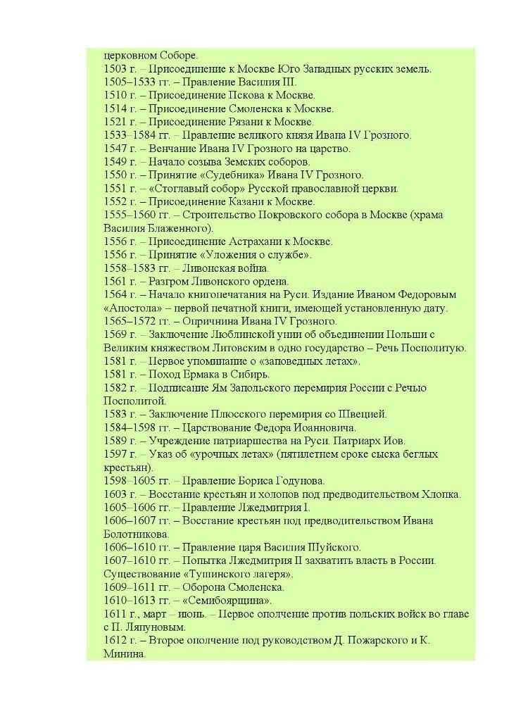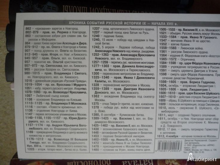 Хронологическая таблица с датами по истории России.