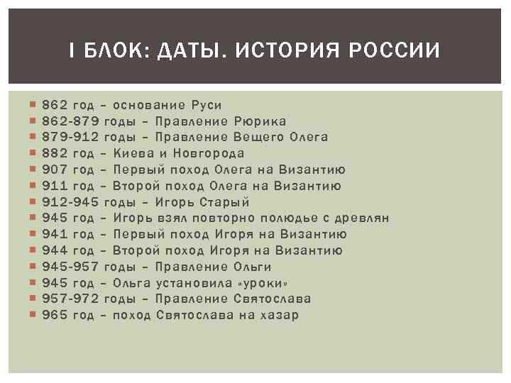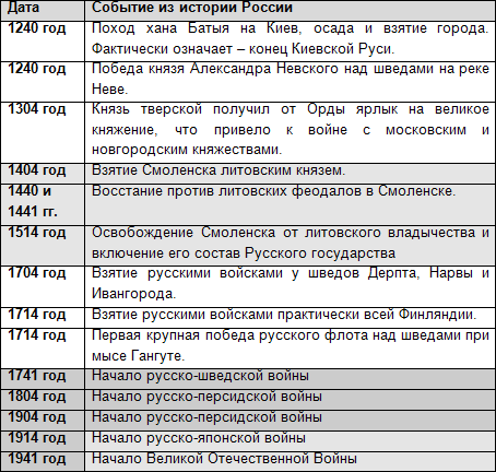 То есть в заданиях на даты уже легко будет сориентироваться, что было позже, а что – раньше. Самое главное – эти даты должны быть очень, очень значимы для истории России – своеобразный Рубикон. Вот список самых важных дат, который должен выучить КАЖДЫЙ ученик: